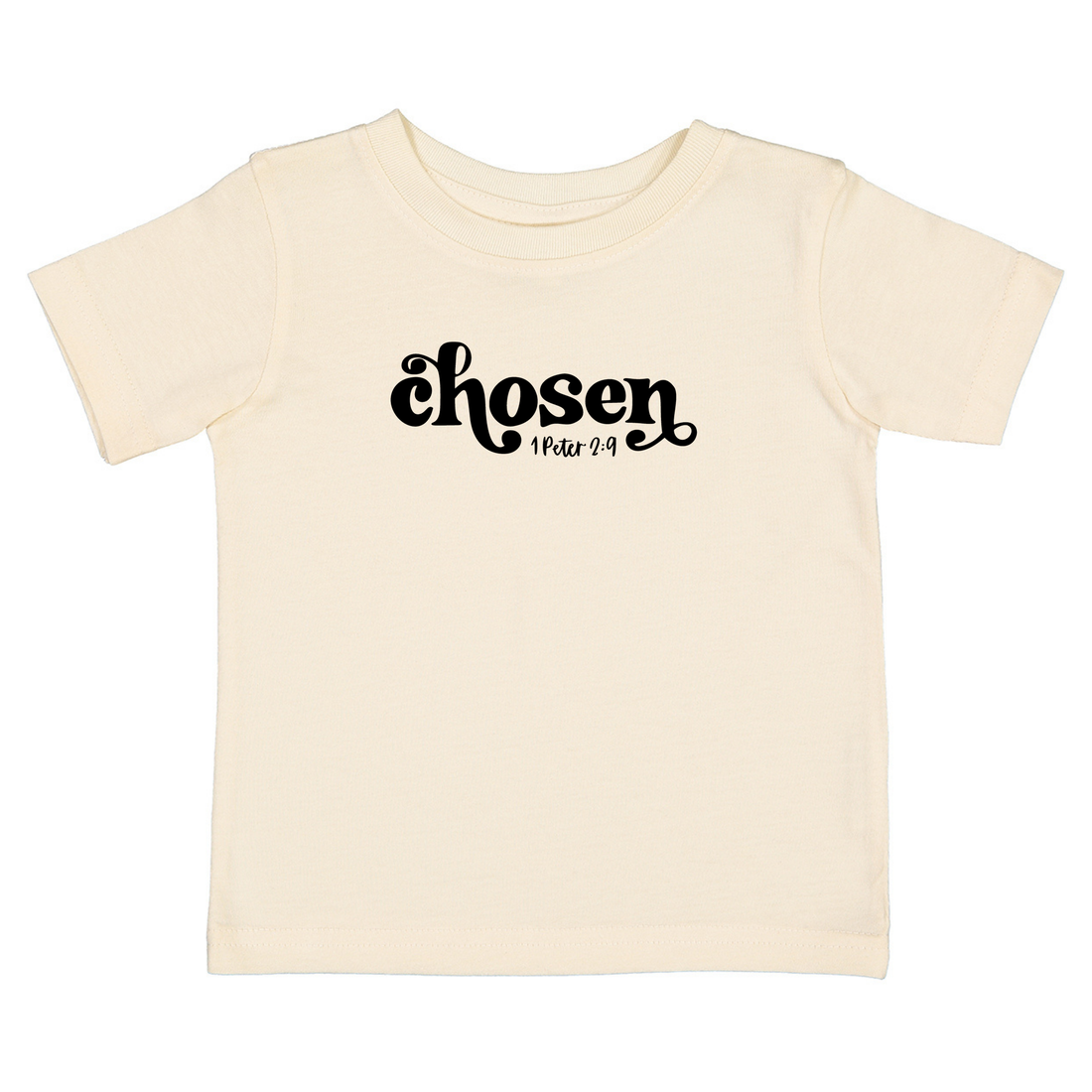 "But you are a chosen people, a royal priesthood, a holy nation, God's special possession, that you may declare the praises of Him who called you out of darkness into His wonderful light." These high-quality, buttery-soft onesies and toddler tees are designed and printed in the United States. Details Color: Natural Imprint Color: Black Imprint Size: 4 inches wide x 1.5 inches tall Material: Onesies are 100% Cotton//Tees are a Cotton/Polyester Blend