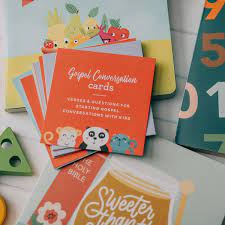This set of twelve Gospel Conversation Cards for kids includes a memory verse as well as two questions to ask your children to encourage conversation centered on the gospel, and encourage children to be able to apply Scripture to their lives.