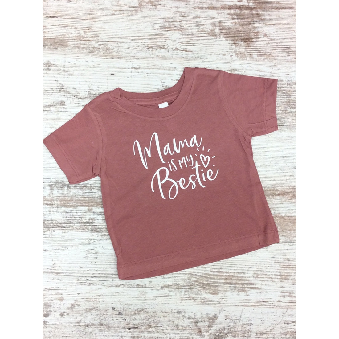 “Mama is my Bestie” applied to a mauve tri-blend Bella + Canvas tee with heat transfer vinyl. i recommend washing these inside out. Tumble dry low or air dry.