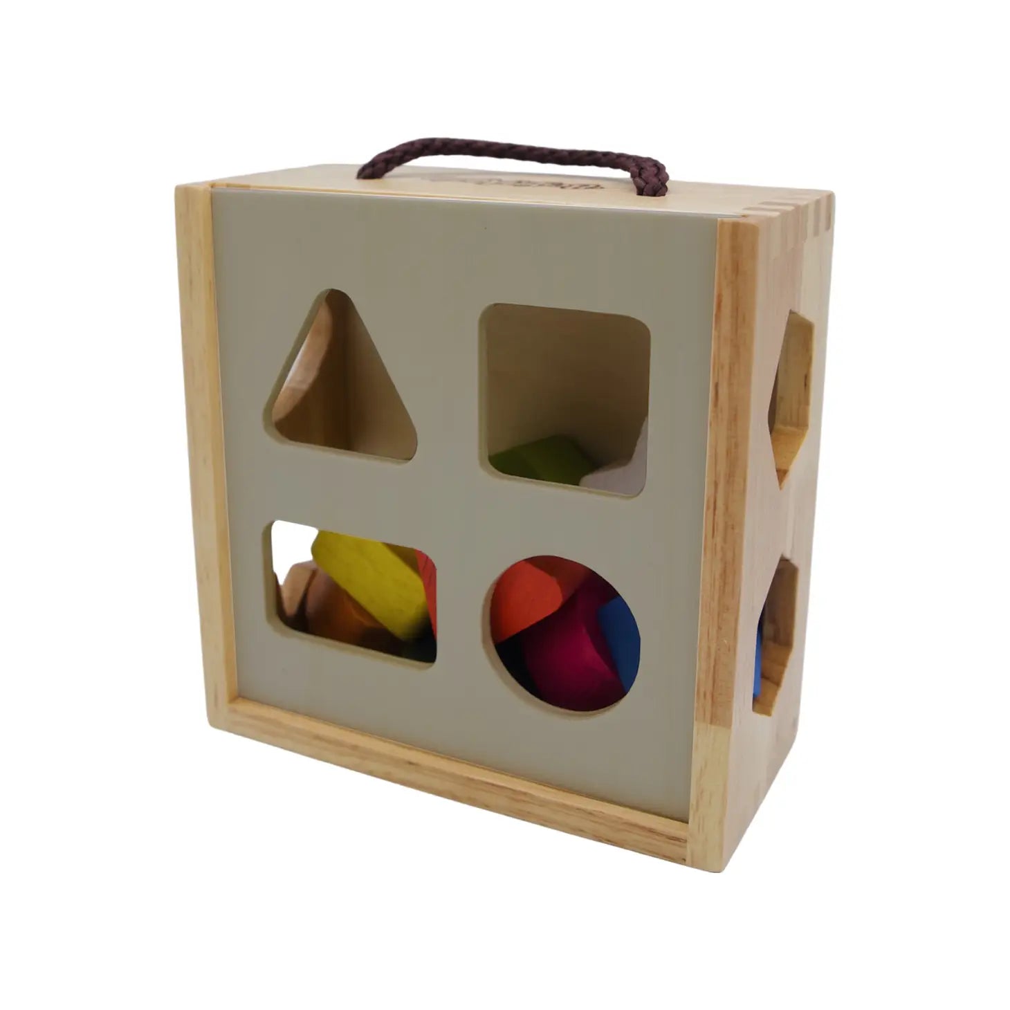 The Shape Sorter On The Go is the perfect travel gift for active kiddos and parents! This beautiful wooden shape sorter box has a convenient carry handle and slid open lid making the perfect road trip companion. This wooden shape sorter offers shape identification and basic sorting puzzle play. Kids will love the carry handle and wooden box and may even store some of their favorites characters in it! Kids can use the slide open lid to access the pieces and allow for easy clean up and carry. Each chunky shape in the set is a unique color and has the name of the shape printed on the block. This travel sized infant toy features sustainably harvested woods and is finished with non-toxic, child-safe water based stains. Recommended for ages 2+.